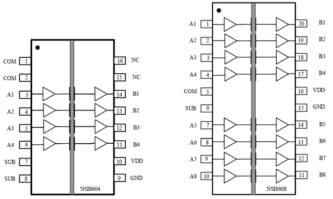 NSi860x產(chǎn)品系列包括4CH(NSi8604)和8CH(NSi8608)兩種版本。